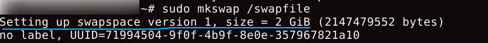 Step 1: Check Current Memory and Swap StatusFirst, examine your system's current memory configuration to understand what resources are already available. 1.1 View the current memory usage, including any existing swap: sudo free -h The swap total is 0B, which means no swap is enabled. This command displays memory information in a human-readable format. You'll see output similar to above: 1.2 Check specifically for active swap spaces: sudo swapon --show If no output appears, your system does not have any active swap files or partitions. If you see output, it displays currently active swap spaces, along with their sizes and priorities. 1.3 Verify available disk space to ensure you have enough room for the swap file: df -h Look for the root filesystem (/) and ensure you have adequate free space. A good rule of thumb is to have at least 1-2GB of free space beyond your intended swap size. Step 2: Create the Swap FileNow, create a dedicated swap file. The size depends on your system's needs, but here are standard guidelines: