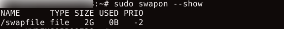 2.1 Create a 2GB swap file using the fallocate command: sudo fallocate -l 2G /swapfile# No Direct Output The fallocate command immediately allocates the specified space. If fallocate doesn't work, use the alternative dd method: sudo dd if=/dev/zero of=/swapfile bs=1M count=2048 This creates the same 2GB file but may take longer as it writes zeros to the entire file. 2.2 Verify the file was created with the correct size: ls -lh /swapfile You should see output showing the file size as 2.0 G. Step 3: Set Proper File PermissionsSwap files contain sensitive data from your system's memory, so securing them is crucial. 3.1 Set restrictive permissions so only the root user can read and write the file: Sudo chmod with code 600 is used to keep any file private sudo chmod 600 /swapfile# No Direct Output 3.2 Verify the permissions are correctly set: ls -lh /swapfile The output should show -rw-------, indicating only root has read/write access. Step 4: Format and Enable the Swap FileTransform your regular file into a swap space that the system can use. 4.1 Format the file as swap space: sudo mkswap /swapfile This command prepares the file for use as swap and displays information about the created swap space, including its UUID. 4.2 Enable the swap file for immediate use: sudo swapon /swapfile# No Direct Output 4.3 Verify the swap is now active: sudo swapon --show You should see your new swap file listed with its size and priority. 4.4 Check the updated memory information: sudo free -h The swap line should now show the additional space available. Step 5: Set up Permanent SwapCurrently, your swap file is only active for this session. To ensure it remains active after reboots, add it to the system's file system table. 5.1 First, create a backup of the fstab file: sudo cp /etc/fstab /etc/fstab.backup# No Direct Output 5.2 Add the swap file to the fstab configuration: echo '/swapfile none swap sw 0 0' | sudo tee -a /etc/fstab# No Direct Output This line instructs the system to mount the swap file at boot time automatically. The fields mean: